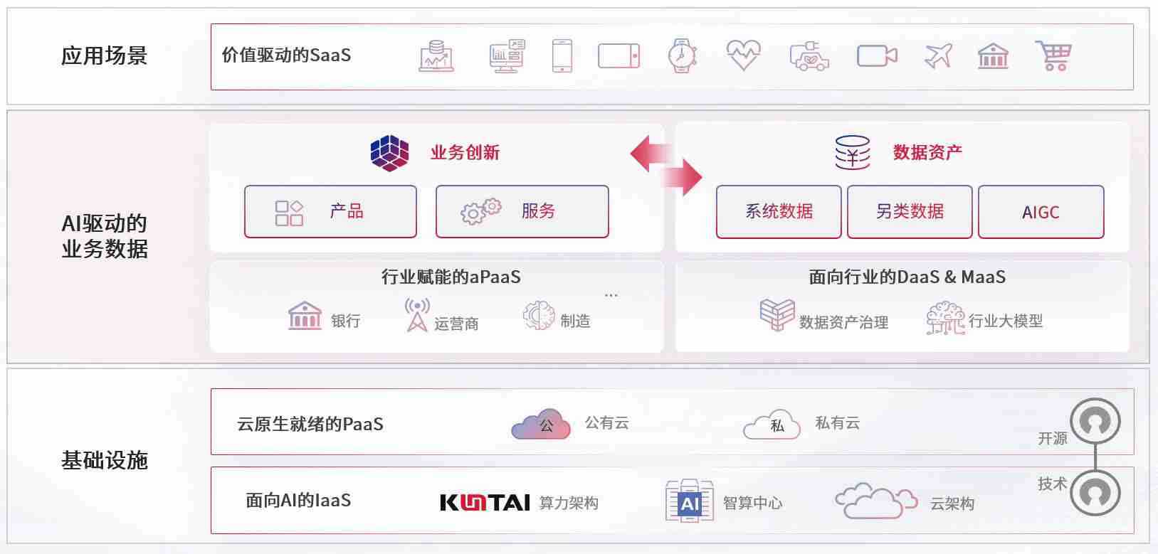 数字时代,,,,围绕企业数字化转型的关键要素,,拉斯维加斯游戏数码开创性的提出数云融合战略和技术体系框架,,,,着力在云原生、、数字原生、、AI原生和信创产业上架构产品和服务能力,,,,为处在不同数字化转型阶段的快消零售、、、汽车、、、金融、、、医疗、、政企、、、教育、、、、运营商等行业客户提供泛在的敏捷IT能力和融合的数据驱动能力,,构建跨界融合创新的数字业务场景和新业务模式,,助力企业级客户建立面向未来的核心能力和竞争优势,,,全面推动社会的数字化、、智能化转型升级。。。